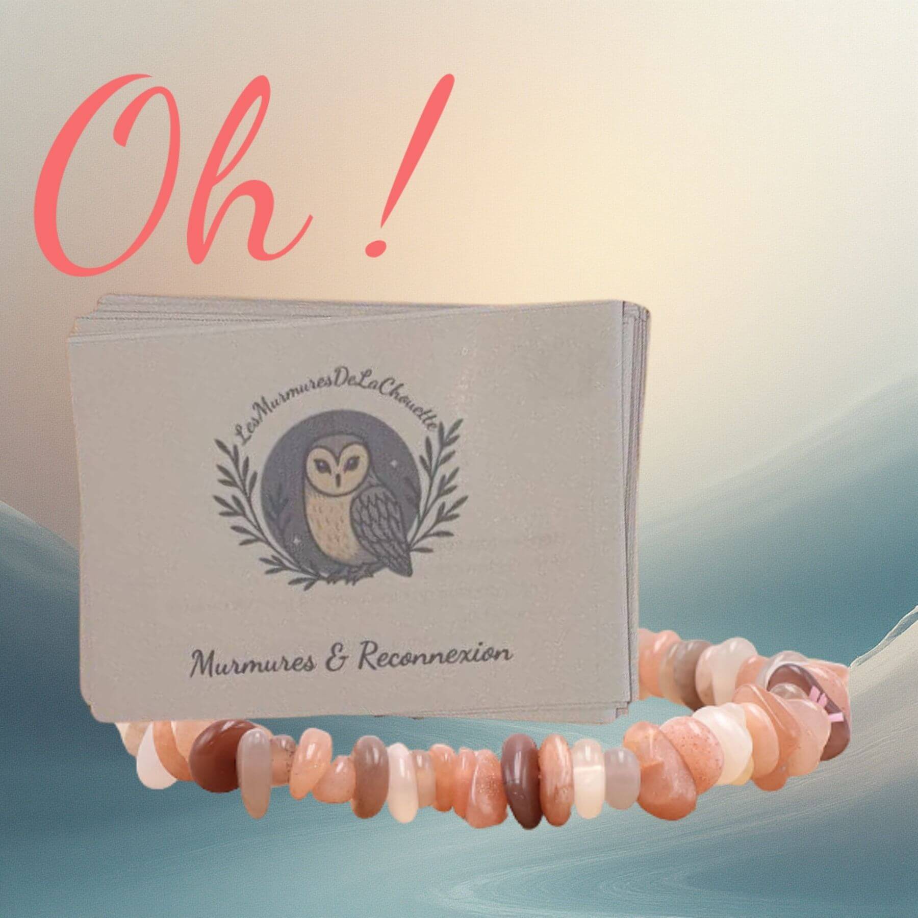 Mélange les cartes de ton oracle Murmures & Reconnexion. Tire celle qui t’appelle aujourd’hui : respiration, écriture intuitive, danse libre ou gratitude ? Suis le rituel proposé en pleine conscience, laisse-toi guider par ton intuition. Note tes ressentis dans un carnet, pour observer ton évolution et t’encourager à continuer. Chaque rituel dure de 5 à 15 minutes, parfait pour t’accorder une pause quotidienne sans contrainte. Et pendant ce temps, ton bracelet en pierre de lune repose délicatement sur ton poignet, comme un rappel : “Je suis là. Je m’écoute. Je me choisis.” Oh ! C’est chouette !! de s’accorder du temps pour soi 💫 Contenu : 1 bracelet en pierre de lune (taille 15/16 cm sur élastique) 1 mini-oracle de 17 cartes-rituels + 1 carte explicative Format des cartes : 9 x 6,5 cm (format carte de visite) Fabrication : imprimé, plastifié et découpé à la main dans le Lot-et-Garonne 🇫🇷 Poids total : 100 g environ Dimensions coffret : 15,5 x 15,5 cm Usage : coffret bien-être à offrir ou à s’offrir Tenir hors de portée des jeunes enfants. Les cartes et le bracelet ne se substituent pas à un avis médical. Conserver le coffret à l’abri de l’humidité. Utilisation : bien-être personnel, rituels d’introspection douce. 🦋 À qui s’adresse ce coffret ? 🌙 Faut-il déjà pratiquer la méditation ou les rituels ? ⏳ Combien de temps dure un rituel ? 🎁 Puis-je l’offrir ? 💫 Le bracelet est-il ajustable ? Le Coffret Murmures & Reconnexion est bien plus qu’un cadeau : c’est un doux rappel que tu mérites du temps, de la douceur et de l’amour. Chaque carte, chaque pierre, chaque instant devient une célébration de ton énergie féminine et de ta lumière intérieure. Oh ! C’est chouette !! de se retrouver soi-même 💖