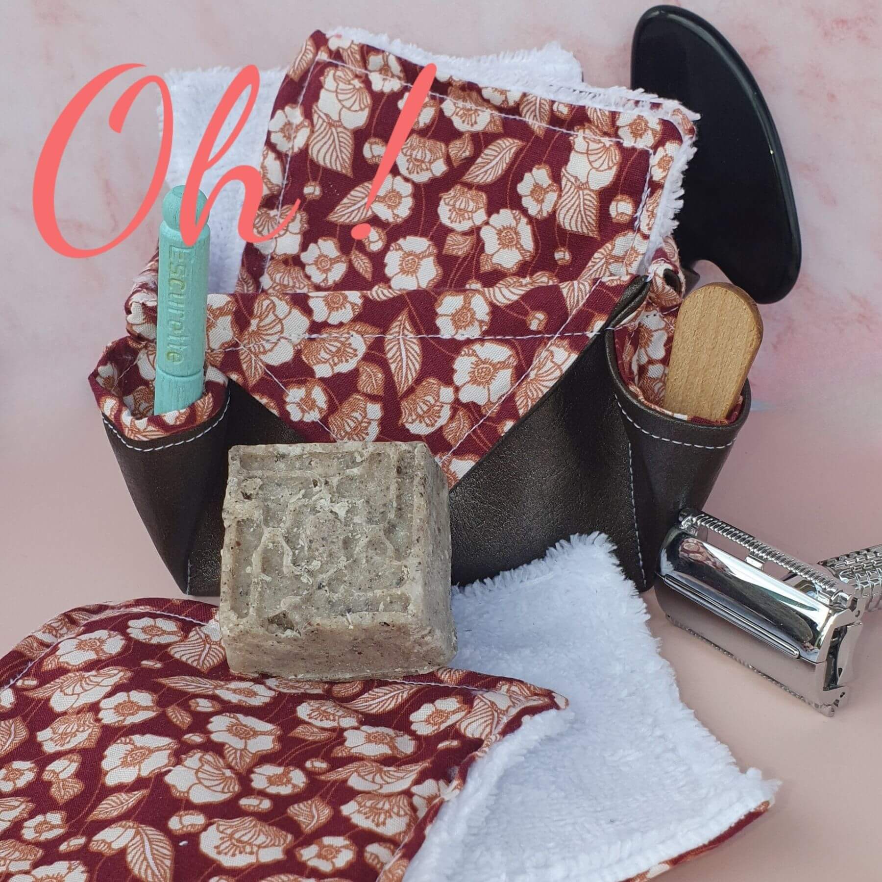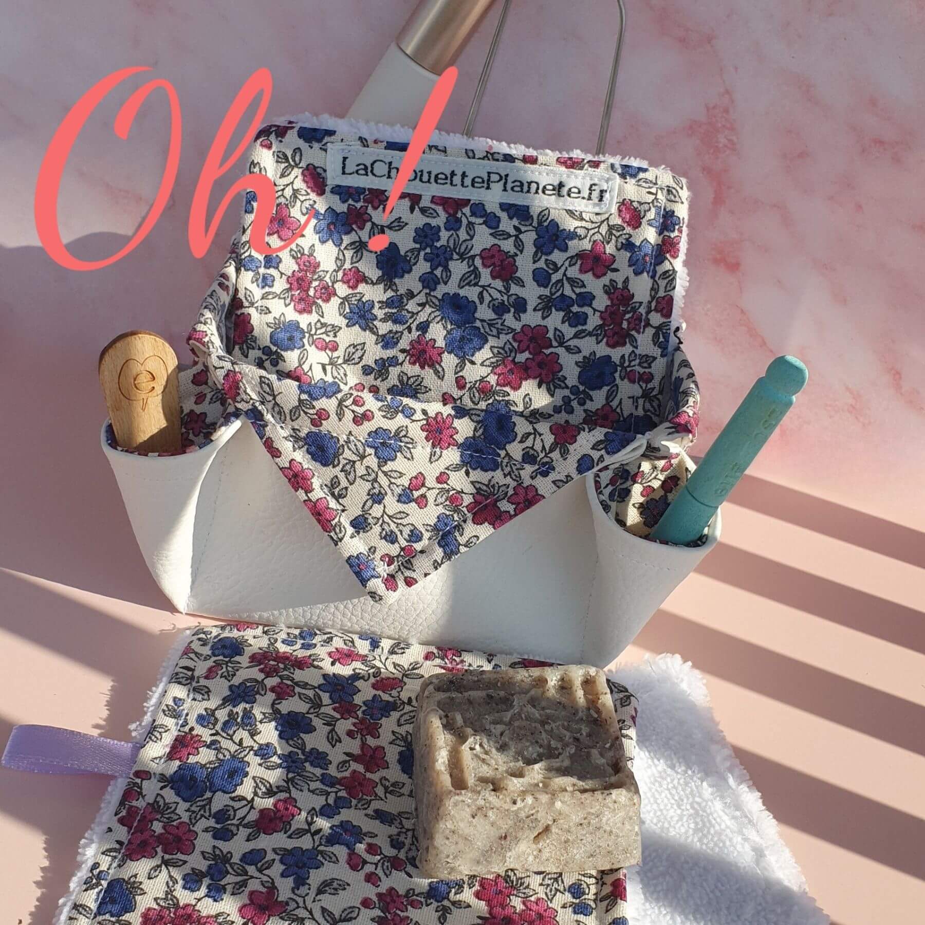 1️⃣ Applique ton produit démaquillant préféré sur la lingette (huile, lait, savon solide…). 💡 Astuce : pour une peau vraiment nette, pense au double nettoyage — ta peau te dira merci ! Et le panier ? Utilise ses 4 mini-poches pour tout organiser. Oui, même ton cure-oreille a sa place ! Produit : Lingettes démaquillantes lavables avec panier multi-poches (lot de 5 lingettes) Fabrication : Artisanale, dans le Lot-et-Garonne 🇫🇷 Usage prévu : Démaquillage et nettoyage du visage Entretien : Lavage machine 30–40 °C, sans adoucissant Durée de vie : Plusieurs années selon usage et soin apporté Composition : 5 Lingettes : Face décorative : 100 % coton Face éponge : 70 % coton, 30 % viscose de bambou 1 Panier multi-poches : 100 % coton décoratif Doublure : simili cuir (coton/polyester + enduction PU) Avertissements spécifiques : Ne pas utiliser sur peau irritée ou plaie ouverte Vérifie l’absence d’allergie au coton, bambou ou polyester Ne pas repasser directement le simili cuir Les petites variations de taille ou de motif sont normales (fabrication artisanale 💛) Lave tes lingettes à 30 ou 40 °C dans un filet de lavage. Évite le séchoir pour préserver les fibres. De temps en temps, offre-leur un bain d’eau chaude avec du percarbonate de soude pour un nettoyage en profondeur. Évite les produits agressifs et préfère les soins adaptés à ton type de peau. Les lingettes ne sont pas des jouets ! Ne laisse pas un enfant les manipuler sans surveillance. Parce qu’elle est ultra-douce, absorbante et naturellement antibactérienne ! Le bambou est une fibre magique : elle respecte la peau, même la plus sensible, tout en gardant un toucher moelleux et agréable lavage après lavage. C’est simple : une fois que tu y auras goûté, impossible de revenir aux cotons jetables. 💄 Comment ranger mes lingettes ? Mais tu trouveras aussi le distributeur de cotons lavables. 🌸 Conviennent-elles à tous les types de peau ? 🧴 Puis-je les utiliser juste avec de l’eau ? ♻️ Combien de fois puis-je les réutiliser ? Oh ! C’est chouette !! Avec tes lingettes démaquillantes lavables, tu prends soin de ta peau, de ta salle de bain et de la planète 🌍 C’est tout doux, tout beau, et tout bon ! Pratique, durable, chic et zéro déchet : bref, tout ce qu’on aime 💚